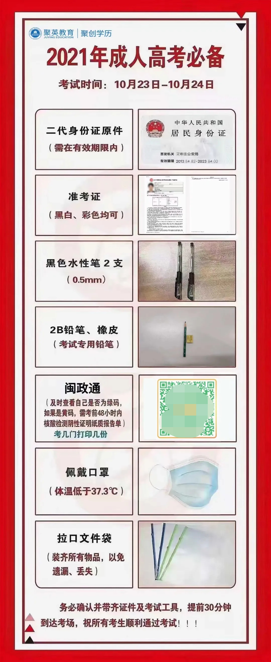 01成人高考考试必备清单